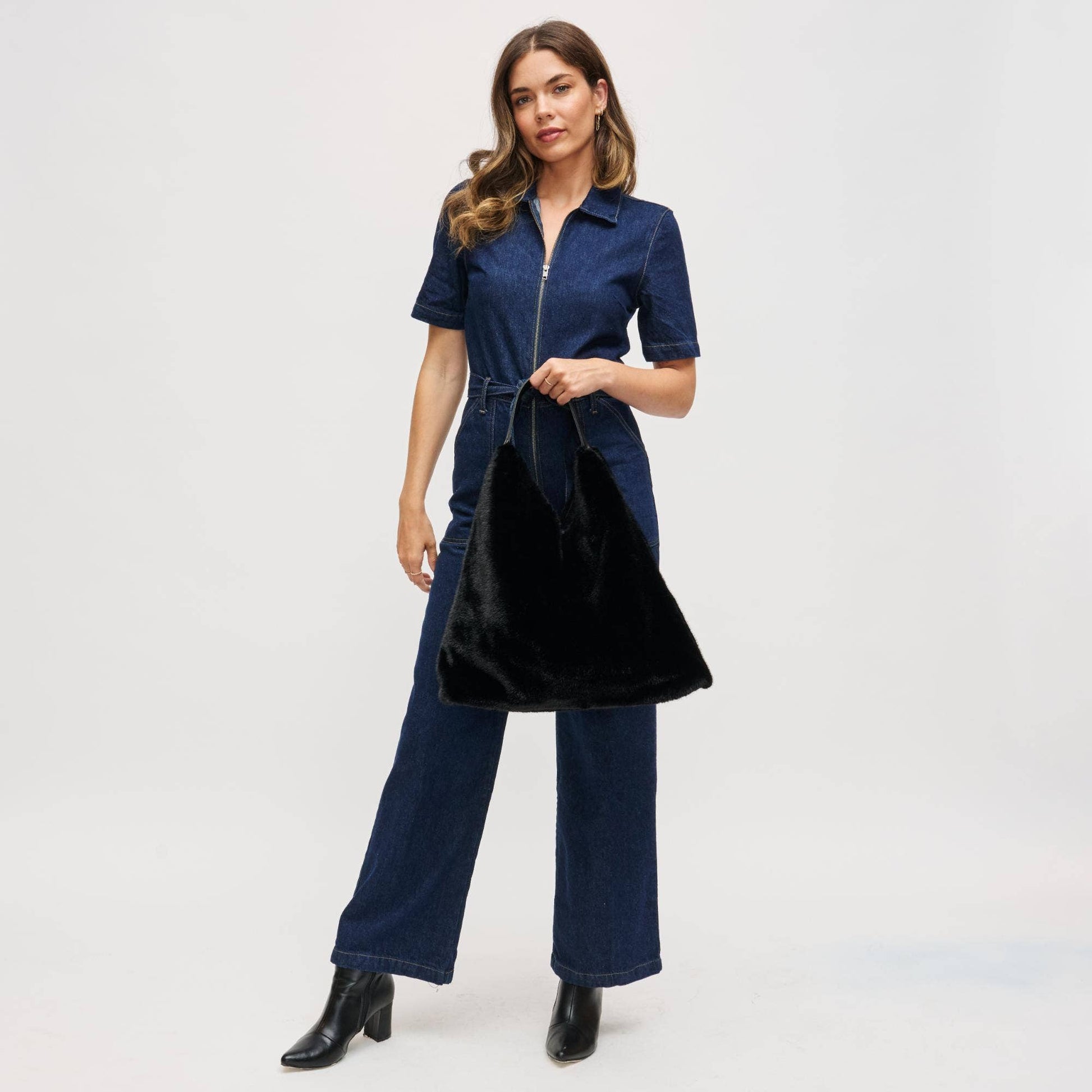 Chandler Large Hobo Faux Fur Hobo Bag: Black